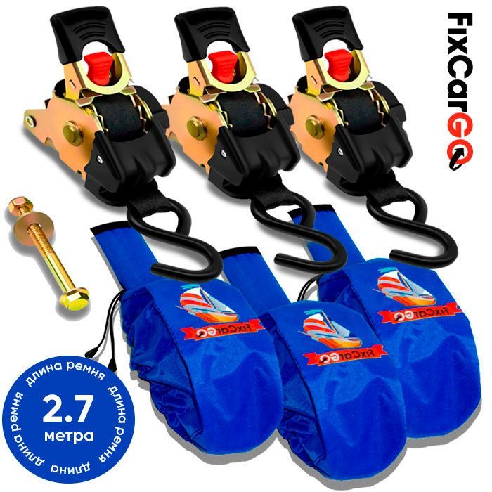 • Самозатягивающиеся стяжные ремни 25 мм. 2,7 м. с чехлами (3 шт.)